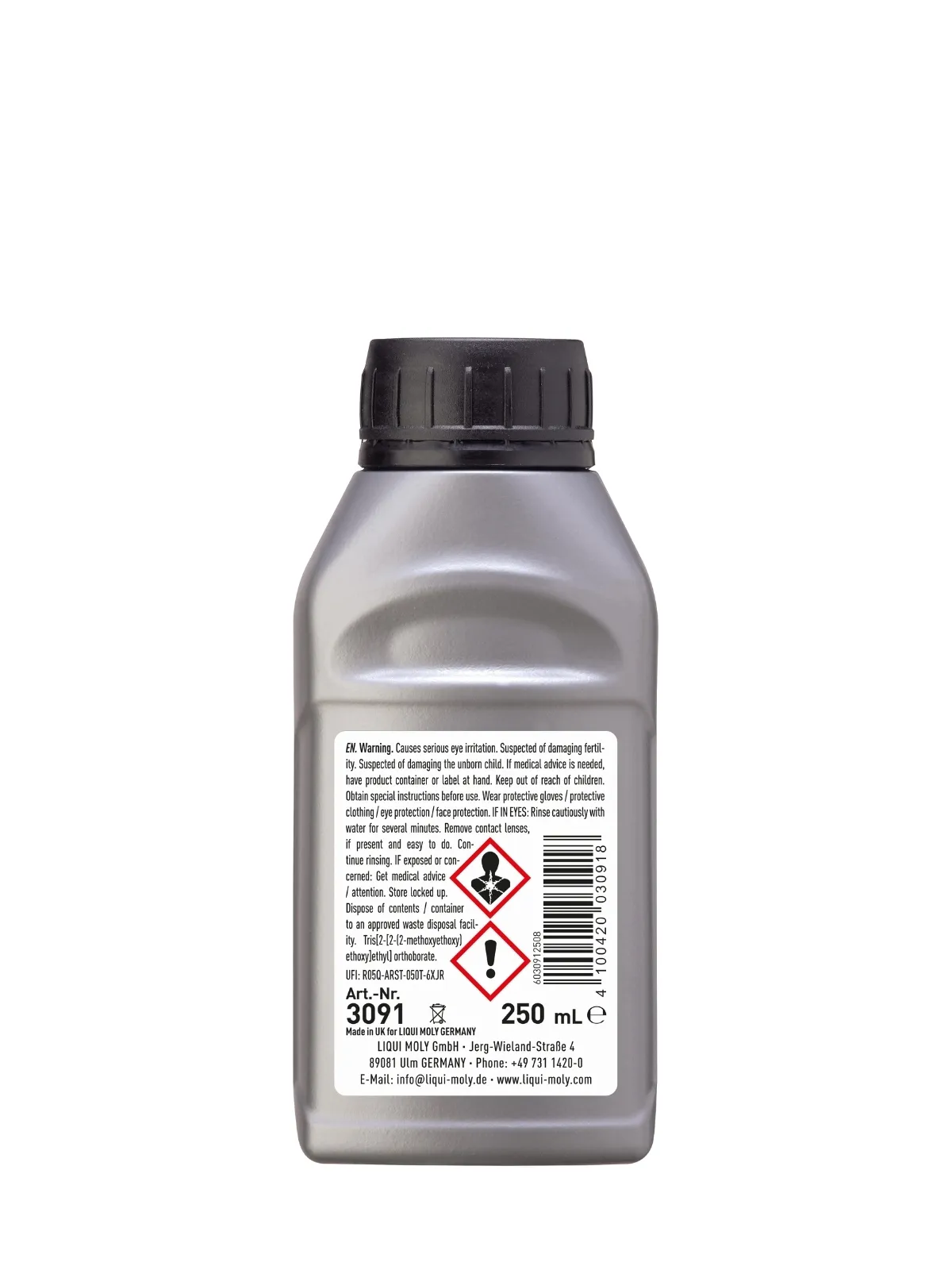 Líquido de frenos sintético a base de glicol-éter, alquilopoliglicoles y ésteres de éter glicólico. Contiene inhibidores que impiden la corrosión de componentes de freno metálicos y reduce la oxidación a temperaturas elevadas.